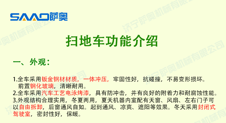 外觀結構合理實用,冬夏兩用,夏天機器內室配有天窗、風扇、左右門子可以自由拆卸,后窗通風自如。起到通風、涼爽、遮陽等效果。冬天采用封閉式駕駛室,密封性好,保暖。