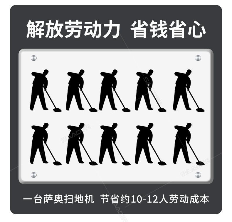 適用于清掃廠區車間、公園、街道、車站、碼頭、物業小區、倉庫、學校、體育場,機場等區域。清掃效率是傳統的人工清掃效率的10-12倍,一臺掃地機可代替10-12位清潔工人。