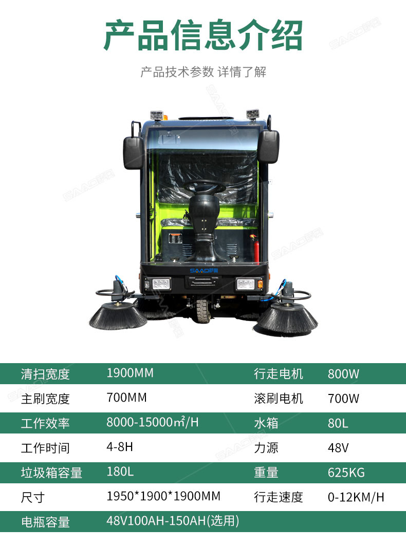 全封閉五刷掃地車綠