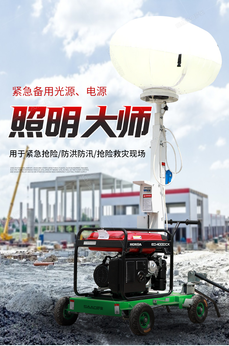 球型工程照明車SZM-Q1000用于體育場(chǎng)館、機(jī)場(chǎng)、碼頭等大型公共場(chǎng)所,公路、鐵路、電力等緊急搶險(xiǎn)現(xiàn)場(chǎng),露天采礦現(xiàn)場(chǎng),以及防洪防汛、搶險(xiǎn)救災(zāi)現(xiàn)場(chǎng)等其他需要緊急備用光源