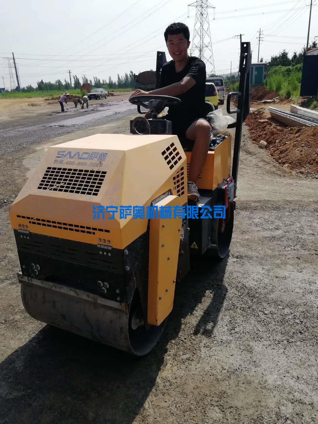 濰坊客戶使用手扶雙輪壓路機施工現場