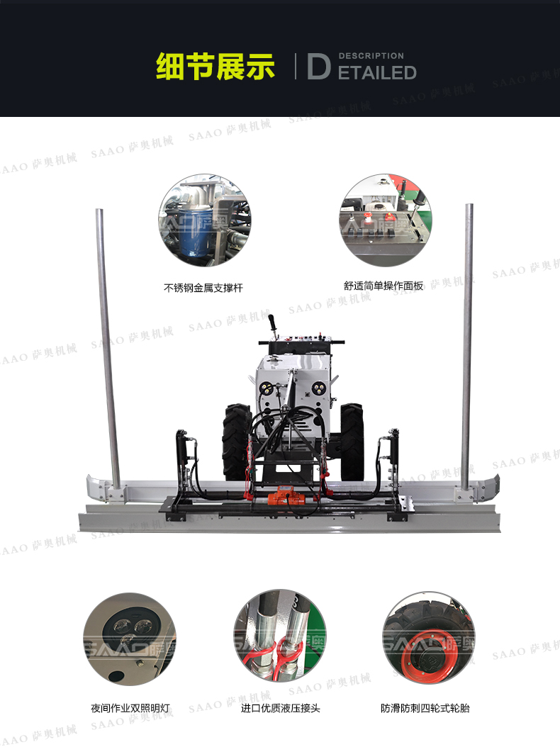我廠專業生產制造激光整平攤鋪機,品質保證,全國發貨。有座駕式6輪激光整平機,座駕式4輪激光整平機,手扶式激光整平機,小型激光整平機,規格齊全,如需了解請致電24小時免費電話:400-860-5689