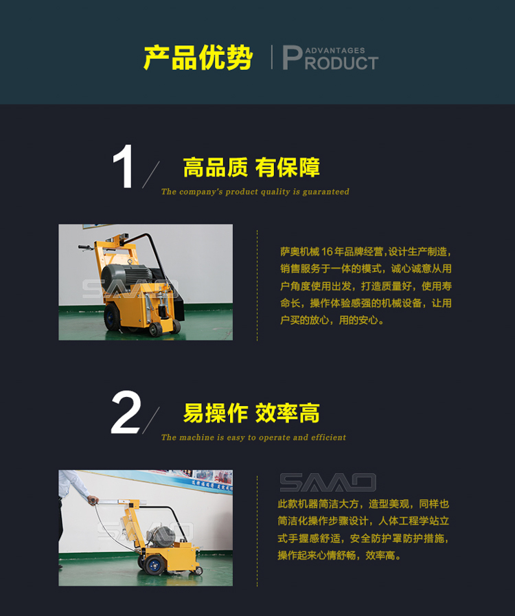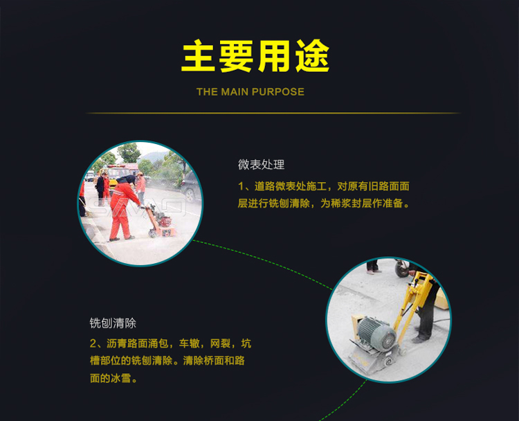 用于橋面鋪設瀝青或車間舊的混凝土地面重新攤鋪混凝土之前,清除水泥浮漿以及鏟平拉毛,也用于清除建筑施工中遺留的堅硬灰渣。