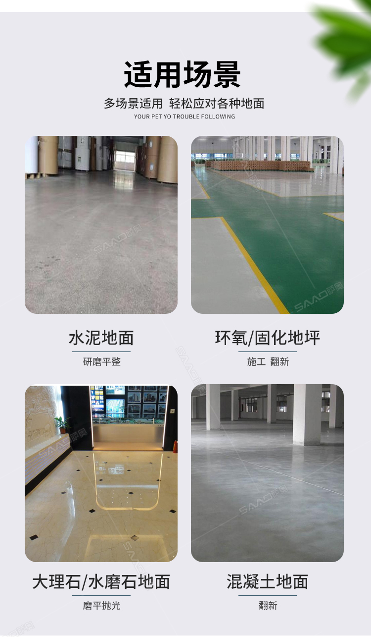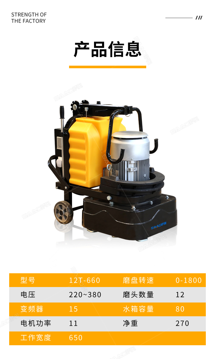 地坪研磨機(jī)其廣泛應(yīng)用于混凝土地面,石材地面的研磨,拋光,最終達(dá)到舊地面翻新,新地面無(wú)塵的效果。 產(chǎn)品參數(shù): 型號(hào) 電壓 變頻器 電機(jī)功率 工作寬度 磨盤(pán)轉(zhuǎn)速 磨頭數(shù)量 水箱容