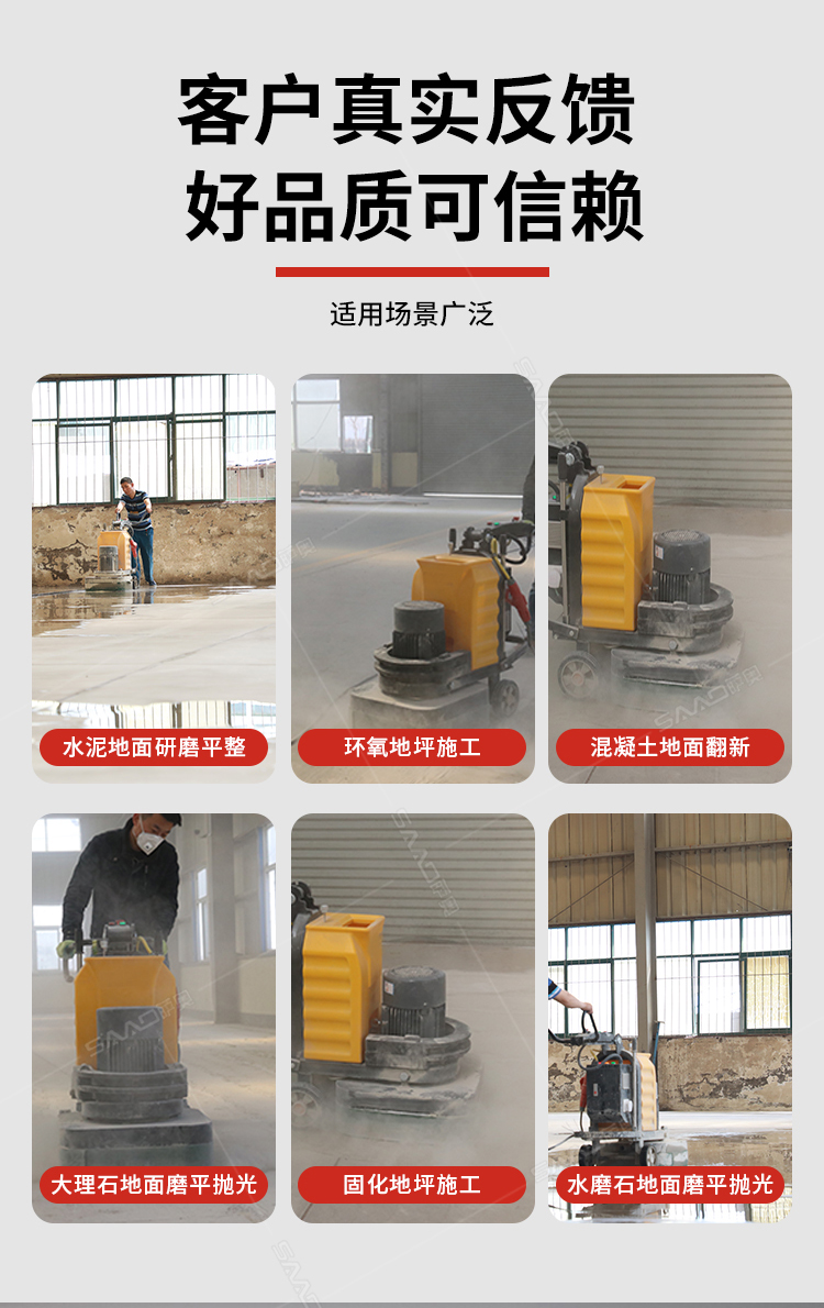 其廣泛用于混凝土地面、石材地面的研磨、拋光,終達(dá)到舊地面翻新、新地面無(wú)塵的效果。