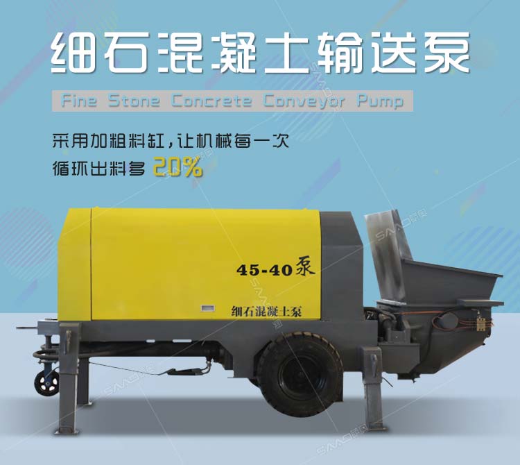 細(xì)石混凝土輸送泵采用加粗料缸,讓機(jī)械每一次循環(huán)出料多20%。