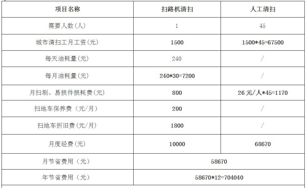 結論:薩奧路面保潔養護清掃機每年可至少節省費用將近70萬元。