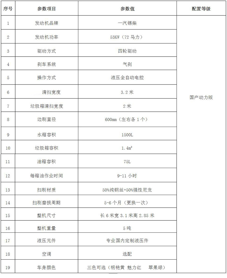 薩奧路面保潔養護清掃機(SA-320Q),高壓水泵噴霧除塵,動力強勁、超大水箱、垃圾可回收,大容積垃圾箱,自動卸料,垃圾自動裝車,裝車高度3米、自動檔駕駛操作簡單靈活,兩邊盤刷作業讓死角無殘留。一機多用,多裝置快換技術,是道路養護的清掃裝備,廣泛用于國道、省道、縣道及農村公路養護清掃工作。