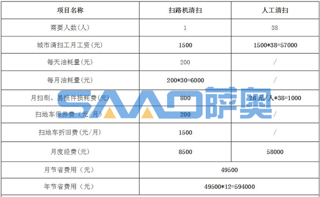 結(jié)論:薩奧路面保潔養(yǎng)護清掃機每年可至少節(jié)省費用將近60萬元。