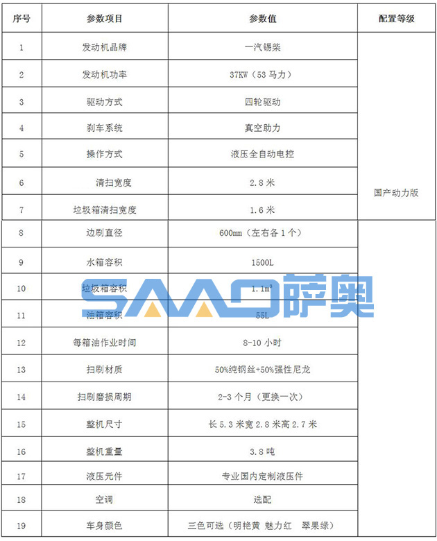 薩奧路面保潔養(yǎng)護清掃機(SA-280Q),高壓水泵噴霧除塵,動力強勁、超大水箱、垃圾可回收,大容積垃圾箱,自動卸料,垃圾自動裝車,裝車高度3米、自動檔駕駛操作簡單靈活,兩邊盤刷作業(yè)讓死角無殘留。一機多用,多裝置快換技術(shù),是道路養(yǎng)護的清掃裝備,廣泛用于國道、省道、縣道及農(nóng)村公路養(yǎng)護清掃工作。