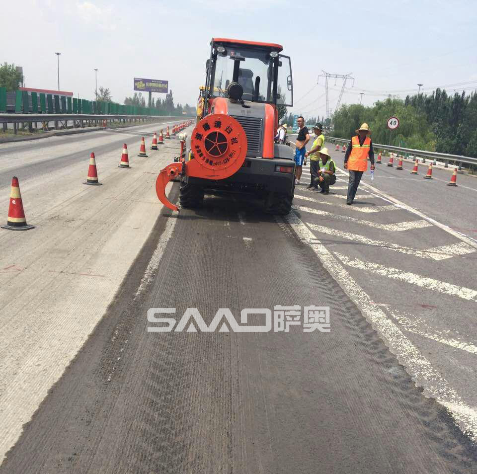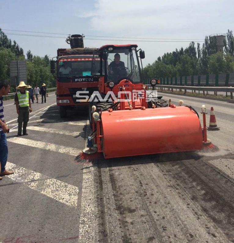 根據路面作業要求,在攤鋪瀝青作業前,要求水穩層或銑刨路面保持清潔,不能有沙石等雜物。一般情況下每50公里10人需要5個工作日。而薩奧道路施工強力清掃機最多只需要1個工作日就可以清掃干凈,大大提高了安全性和效率。