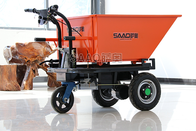 新型電動(dòng)斗車相比于傳統(tǒng)的翻斗車改用了電力推動(dòng),前進(jìn)、后退兩檔操作,告別了過去用人力推車,比較費(fèi)力,人員勞動(dòng)強(qiáng)度大等弊病。新型電動(dòng)斗車由人員控制方向,手柄控制速度自動(dòng)形式,爬坡能力強(qiáng),路面不平的地方也可以行駛。
