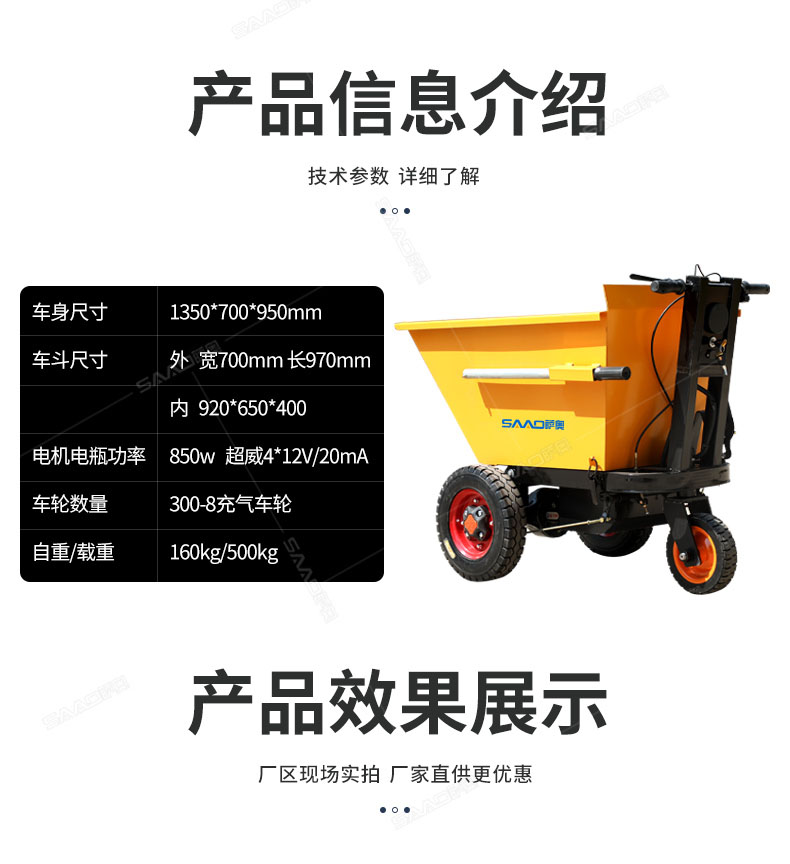 產品介紹: 此款車適用于建筑工地、室內裝修、養殖場、工廠等場所,運輸沙子、水泥、土方、混凝土、建筑垃圾生活垃圾、養殖場動物糞便、飼料等,體積小操作簡單靈活,可原地360度轉圈,可進入樓層、樓道、電梯、吊籃等各種狹小空間作業,是您必不可少的裝卸助手。