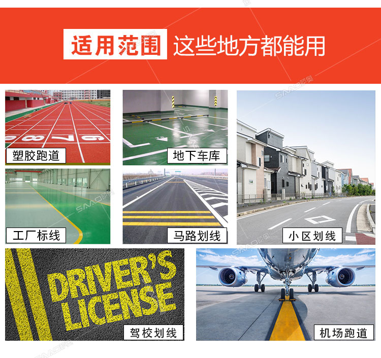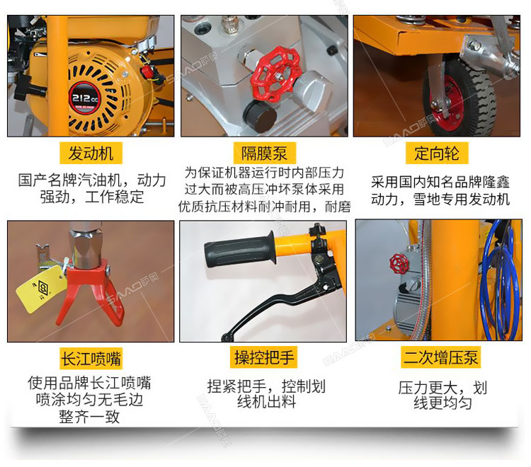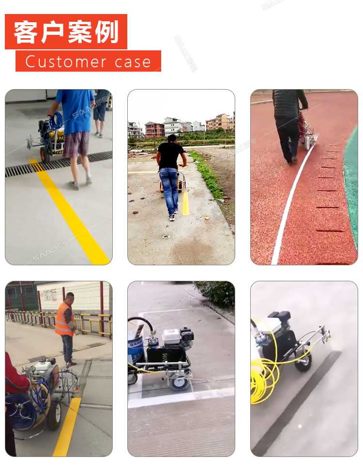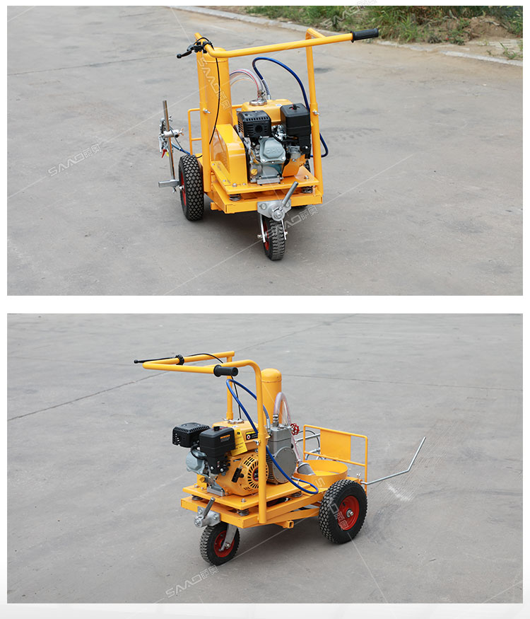 冷噴劃線機是常溫標線施工的專用設備,噴出的線型清晰、流暢、飽滿、均勻,主要用于公路、停車場、機場、加油站、公司廠區等涂畫直線、虛線、曲線、斑馬線、文字、箭頭、圖形