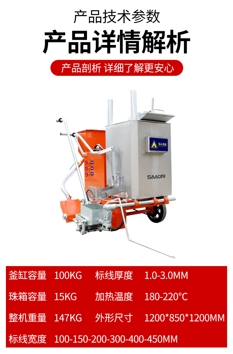 一:產品用途 多功能熱熔劃線機是我公司根據市場需求,獨立研發生產的一款新型劃線機,該機集熔料與劃線一體,可獨立完成各類線型的施劃。對工程量較小零散復雜的停車位、場區