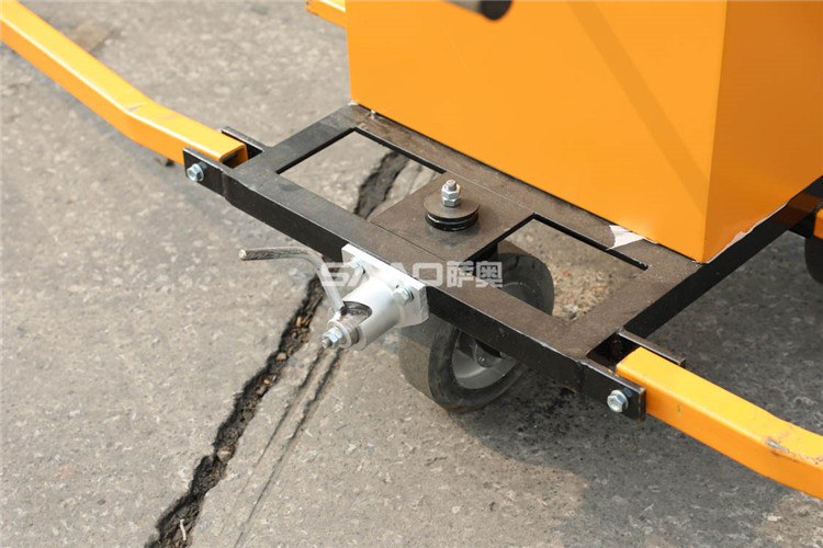 打水線機廠家"預標線機又叫打水線機,是道路標線的輔助設備。水線機主要用來在公路上打水線,可以同時打四條水線,提高工作效率。水線機有獨特的萬向輪配置,輔助萬向輪有減震等功能。后置萬向輪采用天然橡膠輪,具有鎖定、耐磨、減震等功能。優質不銹鋼涂料閥,耐磨損,可頻繁開合,使用壽命長。大容量料筒,適合持續性作業。大可支持9米寬馬路路面同時劃3條水線。