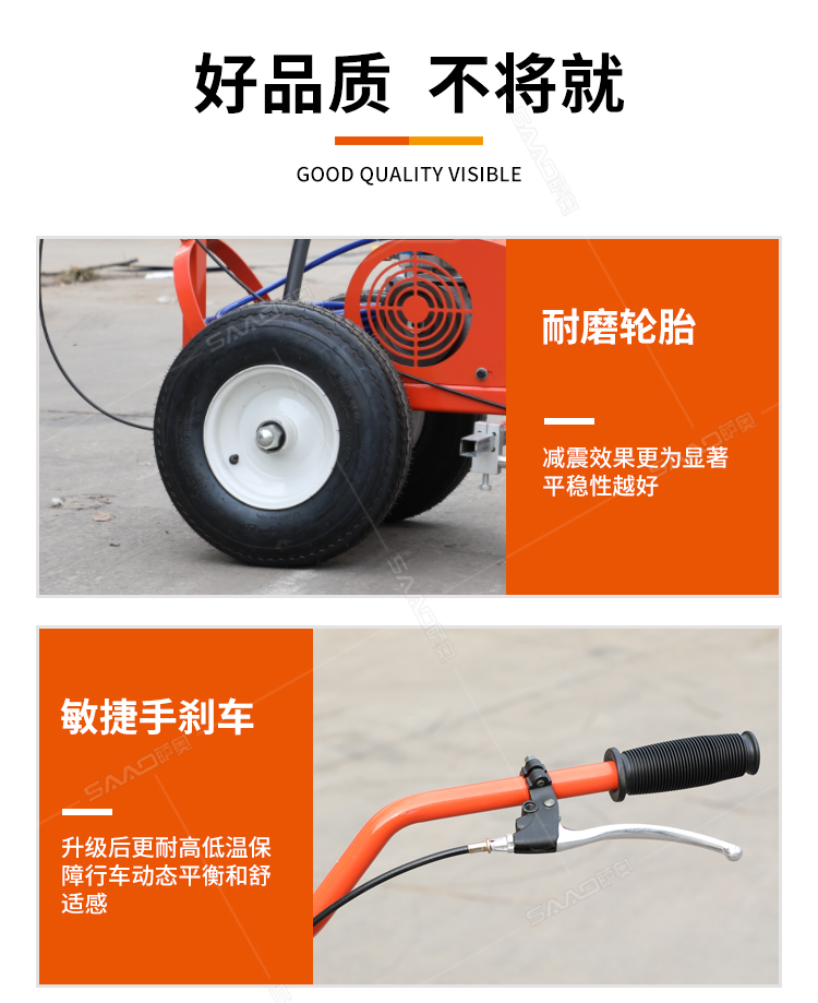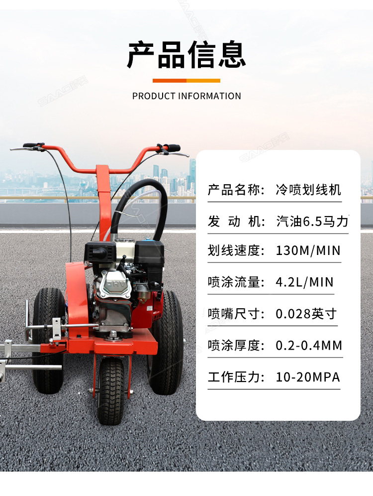 小型手推式道路劃線機是一種在道路、停車場、廣場和跑道等平整地面上劃出不同約束、指引和警示等規則限制標志的路面施工機械。最常見的就是在馬路上劃斑馬線,在路上劃車庫線
