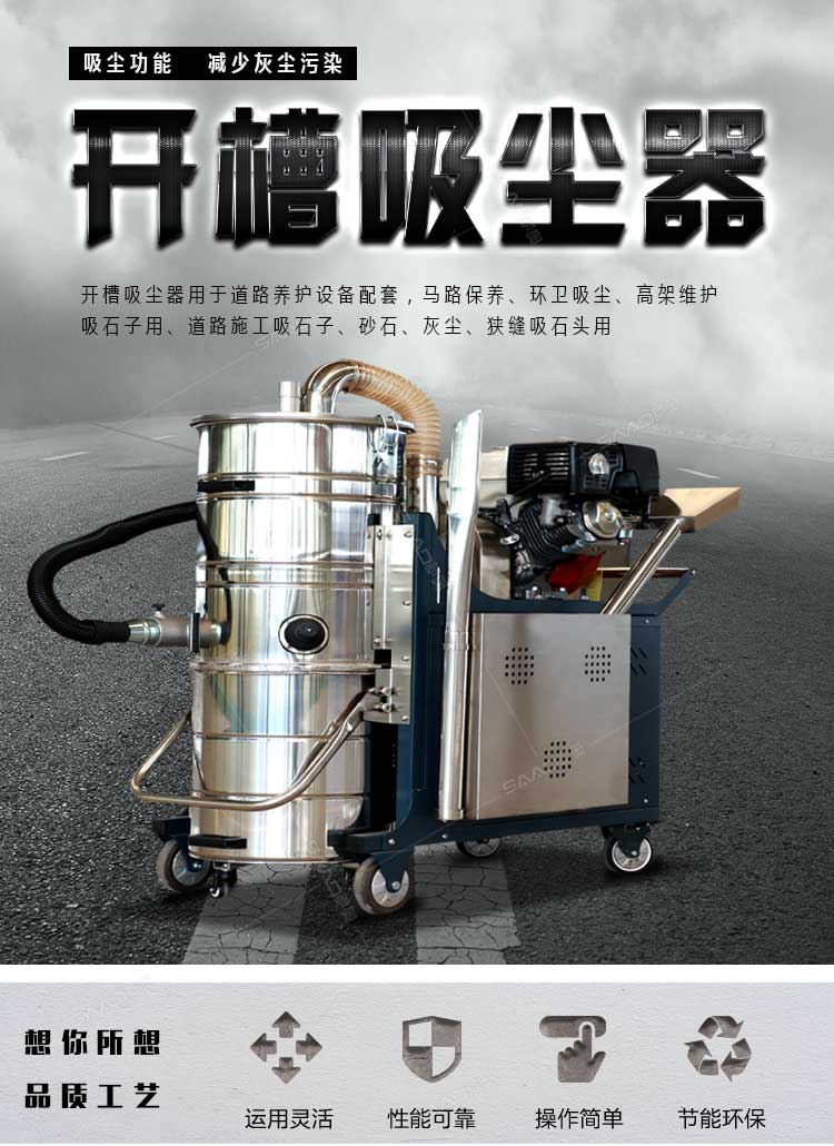 開槽吸塵器用于道路養(yǎng)護設備配套,馬路保養(yǎng)、環(huán)衛(wèi)吸塵、高架維護吸石子用、道路施工吸石子、砂石、灰塵、狹縫吸石頭用。
