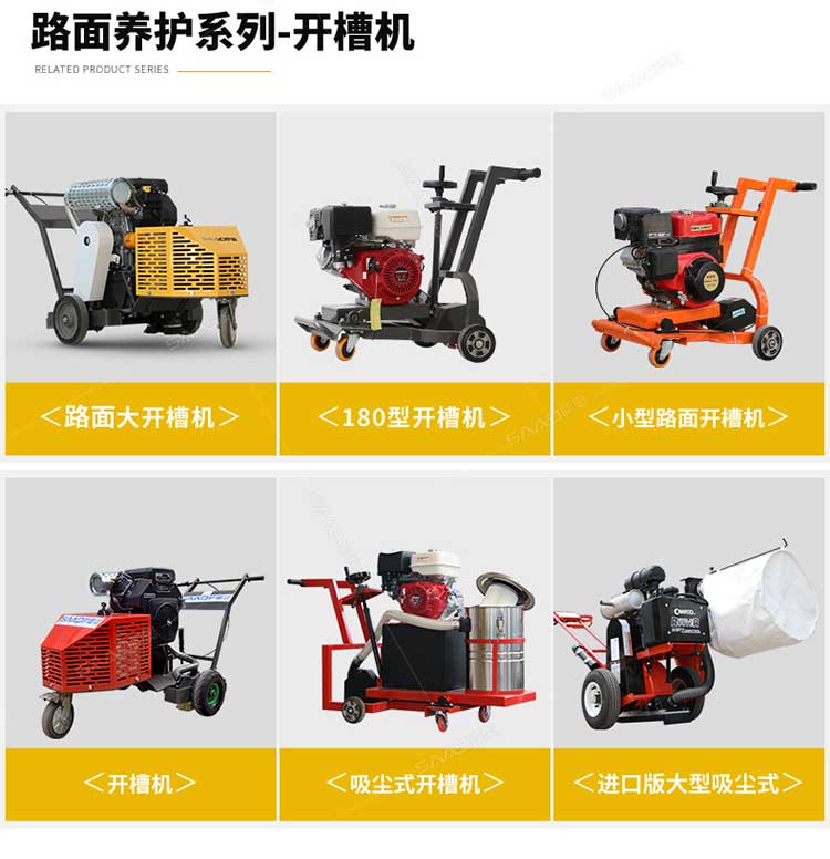 開槽機主要用于瀝青、水泥路面裂縫病害處治時的開槽作業。通過特制金剛石刀片快速將不規則裂縫整理成均勻的凹槽,形成新的結合面。優化灌縫材料與縫槽的接觸層面,加強灌縫材料與縫槽側壁粘結的緊密性。