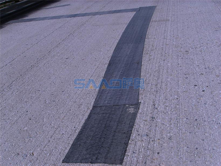 該產(chǎn)品首先可以滿足防水層的厚度,達到良好的防水效果;上薄下厚的結(jié)構(gòu)有效地保證了與基層、面層的粘結(jié)強度,當防護膜與高聚物的熔點低于瀝青混合料溫度時,高強胎基上層的熱熔狀高聚物能很好地起到承上啟下的粘結(jié)作用。置于面層與水溫基層之間,能增強面層與基層間的結(jié)合力,達到了較理想的層間粘結(jié)作用。當路面發(fā)生溫縮時,瀝青面層不僅要承受本身收縮變形的拉應力,而且水溫層的收縮變形會在面層底部引起較大的拉應力,設置粘結(jié)膜 后,水溫基層對面層的附加應力減小,面層底部所受拉應力下降而不導致造成拉裂。有較大延伸性的抗裂防水粘結(jié)膜作為層間層,可以有效地緩解裂縫處的應力集中,即彈性層間層起到了吸收部分拉伸能量的作用,并承擔部分水平應力。