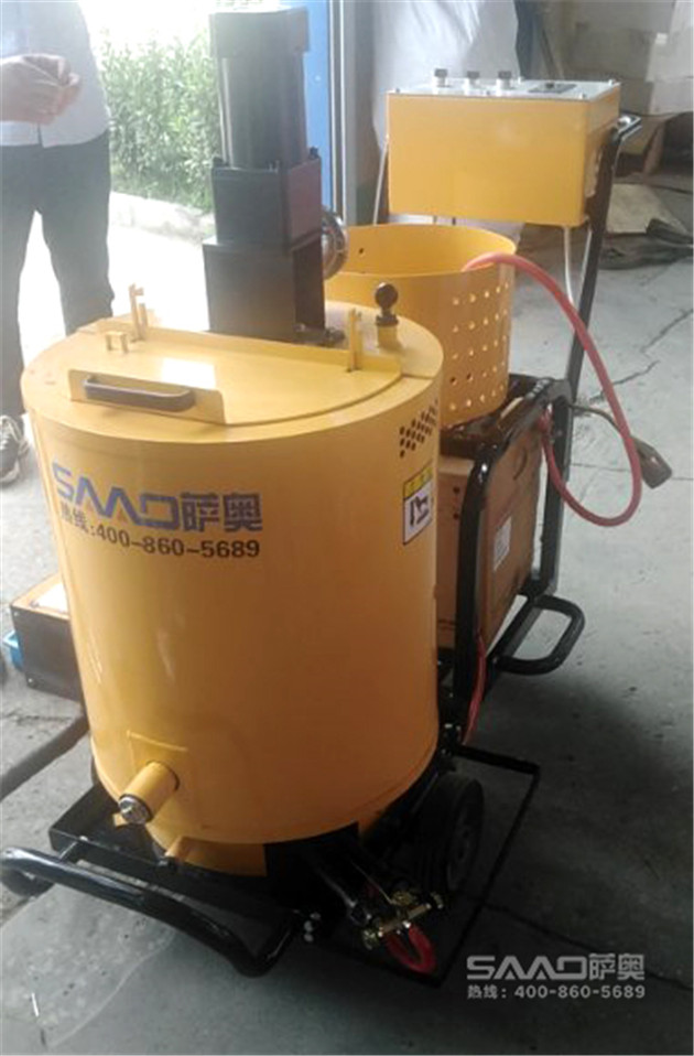 5、待灌縫料溫度達到使用要求時,先開啟設在電器控制箱的電源總開關,按下設在中間加熱開關,約5分鐘左右,,然后按下灌縫開關,在開啟調速器開關和調速電位器進行試灌,確保出料嘴正常擠出灌縫料。如電動機轉動疲動、緩慢,這表明齒輪泵或輸送管路溫度偏低,應立即關閉灌縫開關,停止電轉動,重復上述操作或將用液化氣加大火焰加溫。