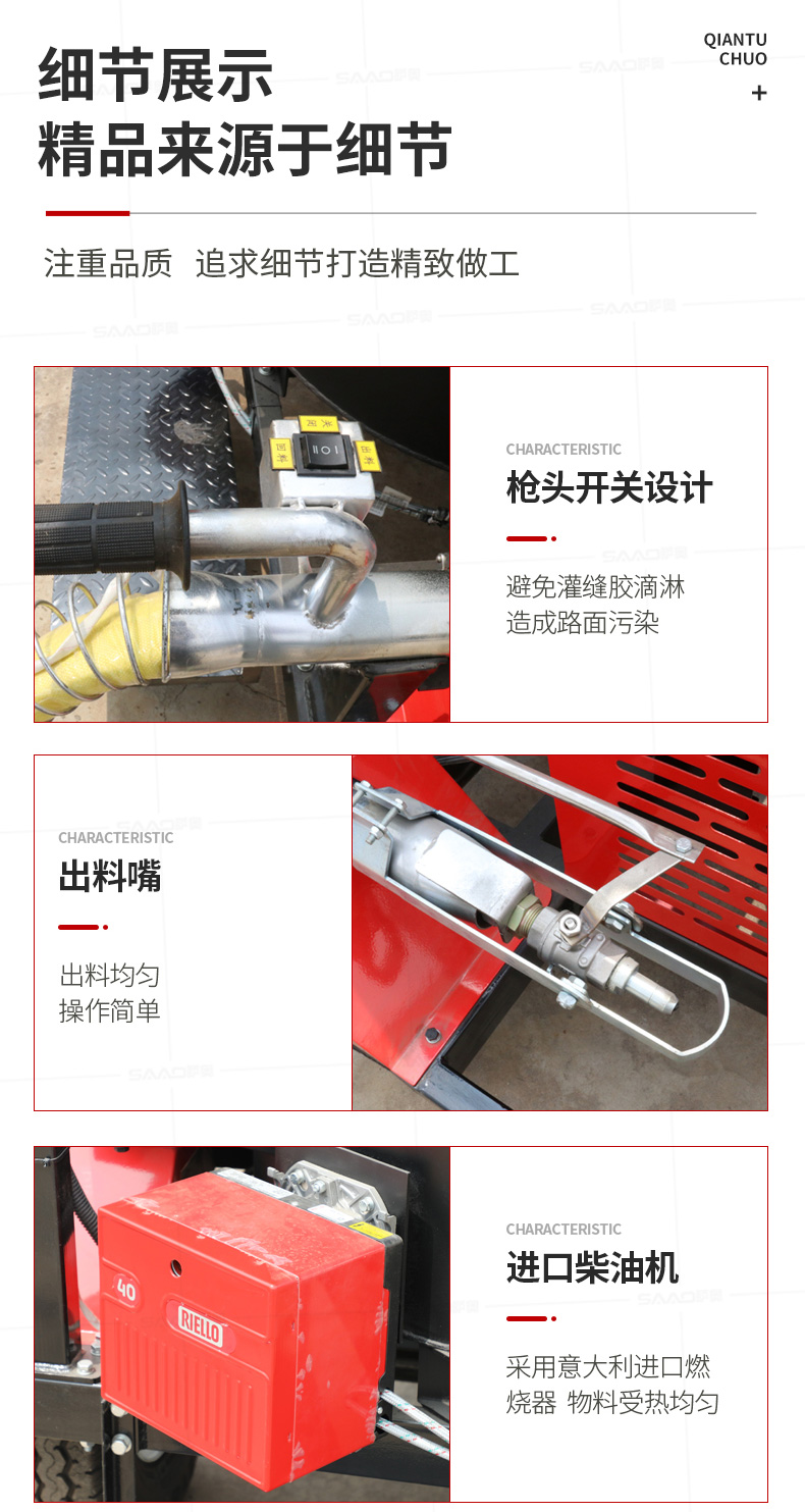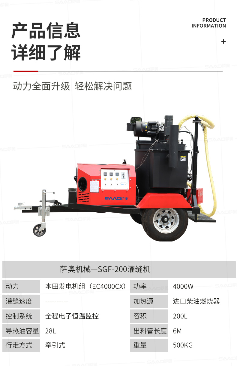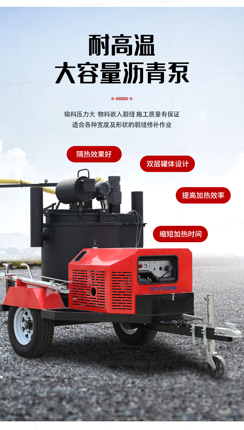 【產(chǎn)品介紹】 200升瀝青灌縫機(jī)適用于瀝青路面或水泥路面裂縫密封灌縫,是中型路面裂縫養(yǎng)護(hù)工程量施工理想設(shè)備。 自主研發(fā)生產(chǎn),擁有自主知識產(chǎn)權(quán)的薩奧品牌,瀝青灌縫機(jī),使用