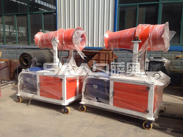 此次發貨的高壓霧炮,通過炮狀水箱向外噴射出細密的水霧,可將空氣中細小的顆粒粉塵有效吸附,進而達到凈化空氣、降塵除霾的作用。環保部門對我公司研發生產霧炮的測試,“霧炮”可以將空氣中的PM10濃度降低15%左右。