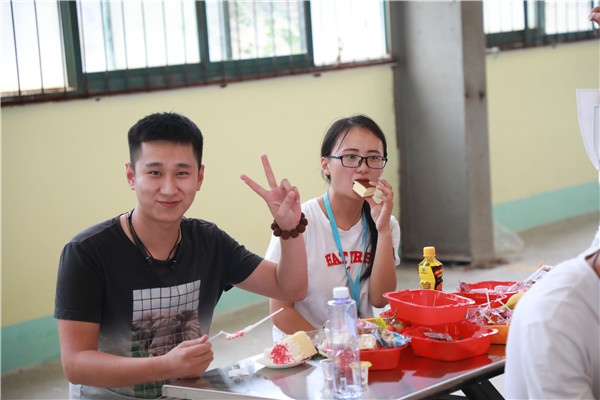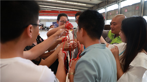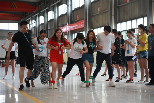游戲---三人兩足。選出24個人,分成4組,各組選出一個組長來制定總的比賽方案。每組6人站成一排,將相鄰的兩人的腳綁在一起行走,在固定的路程內(nèi)計算行走時間。每兩個組之間比較,用時少者勝出。