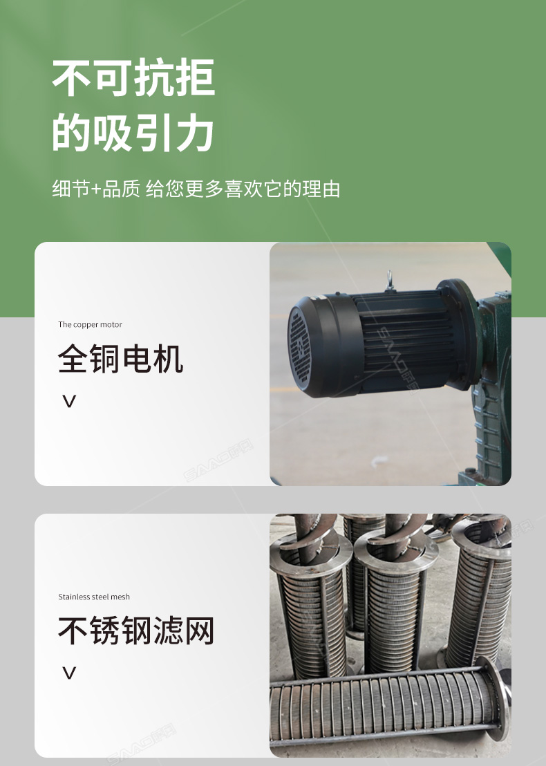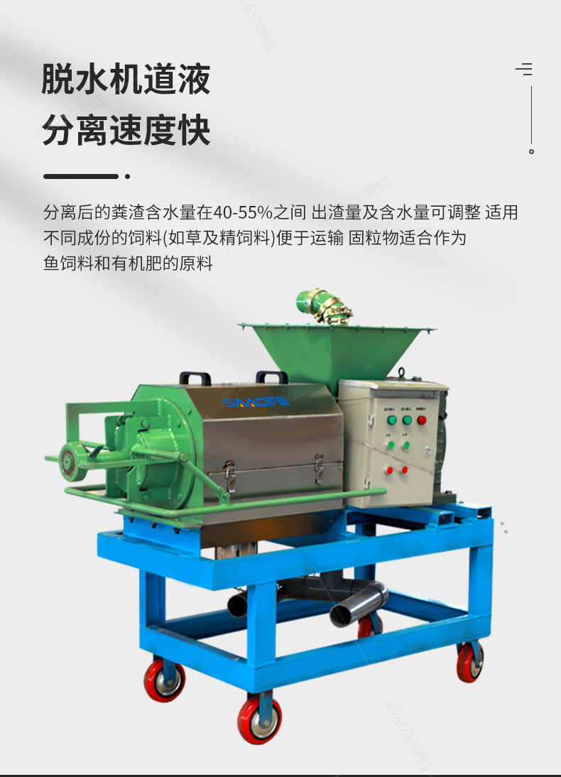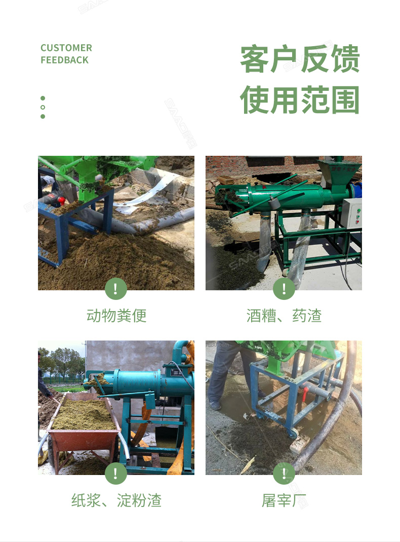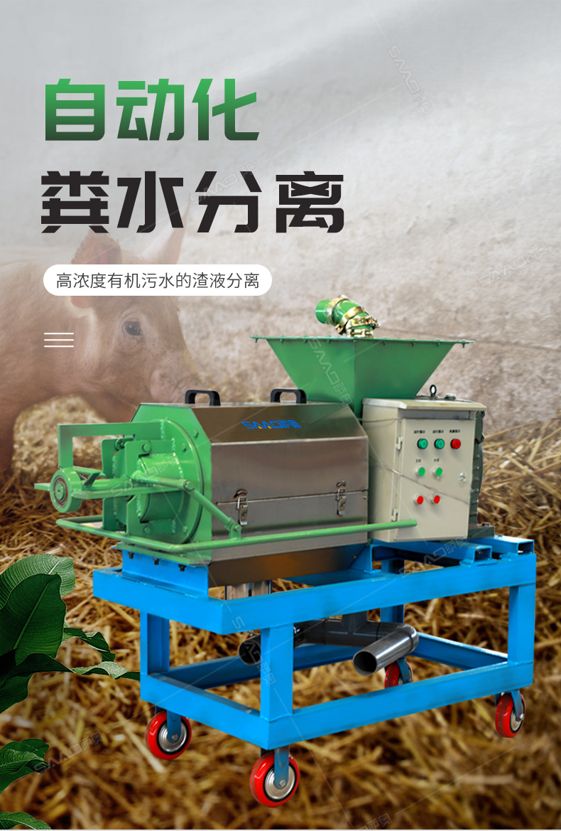 禽畜類糞便固液分離機能將雞糞、牛糞、豬糞等禽畜糞便原糞水分離為液態有機肥和固態有機肥。液態有機肥可直接用于農作物利用吸收,固態有機肥可運到缺肥地區使用,也可起到改