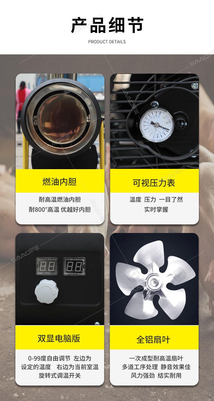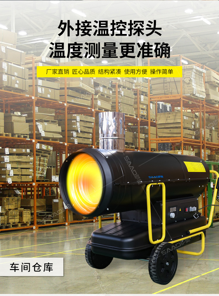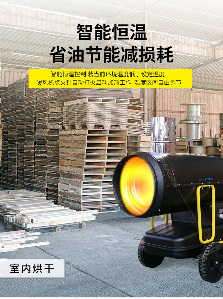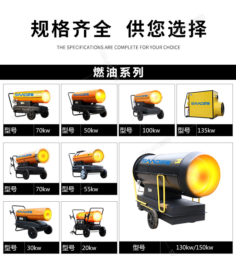 間燃暖風機的應用范圍可以說是非常廣泛的,主要可以應用于大棚育植、食品烘干、茶葉烘干、育雛養殖、 木材解凍、戶外演出等需要供暖供熱的場所,此外,配有光電保護裝置、結構