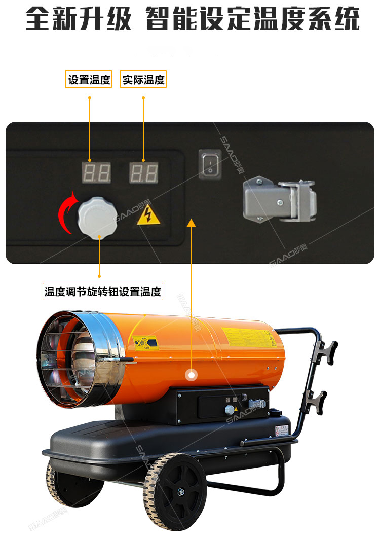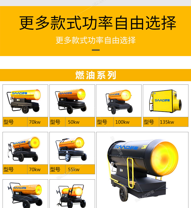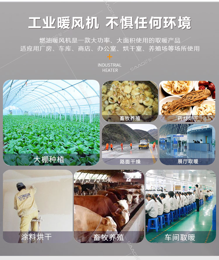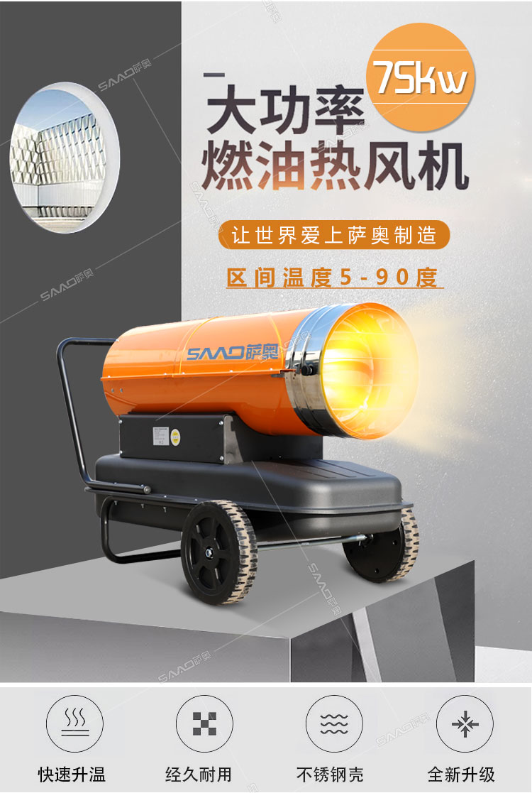 燃油暖風機可控制區間溫度為5-90度,風量更大,升溫更快,在木材的烘干等方面有巨大的功效,非常適合大面積的工業場所使用。