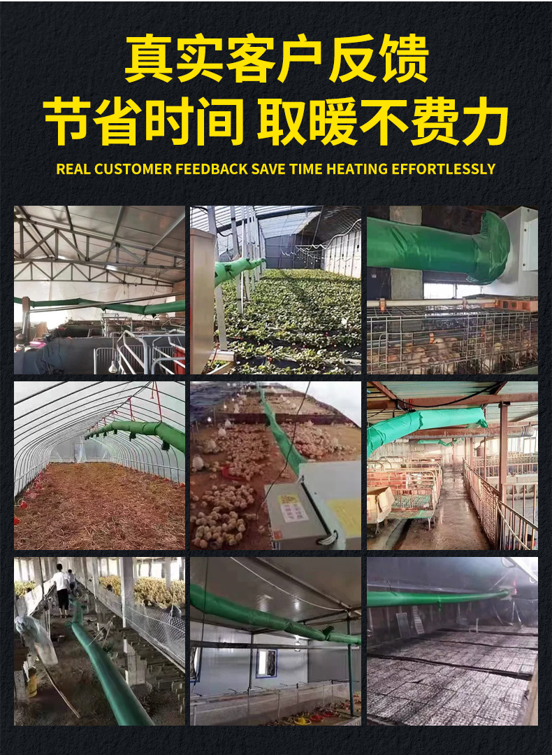 主要用于溫室加熱、育雛養(yǎng)殖、畜牧供暖、菌棚保溫、木材解凍、大棚種植保溫、廠房車(chē)間取暖等。