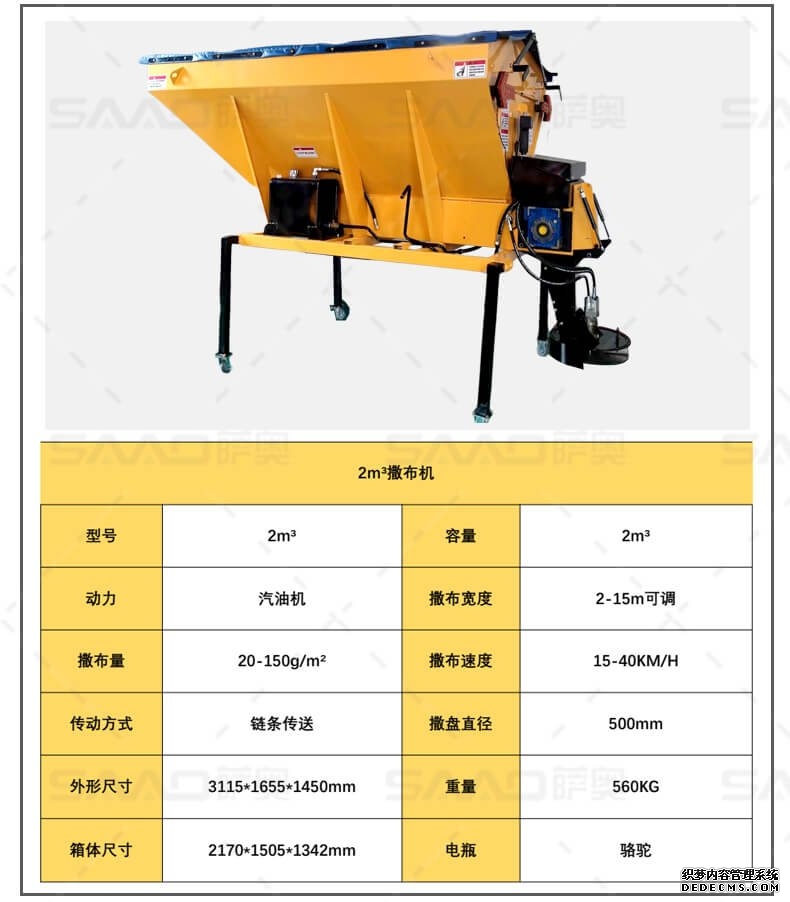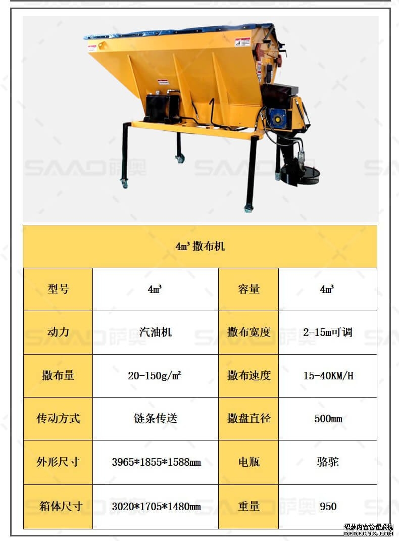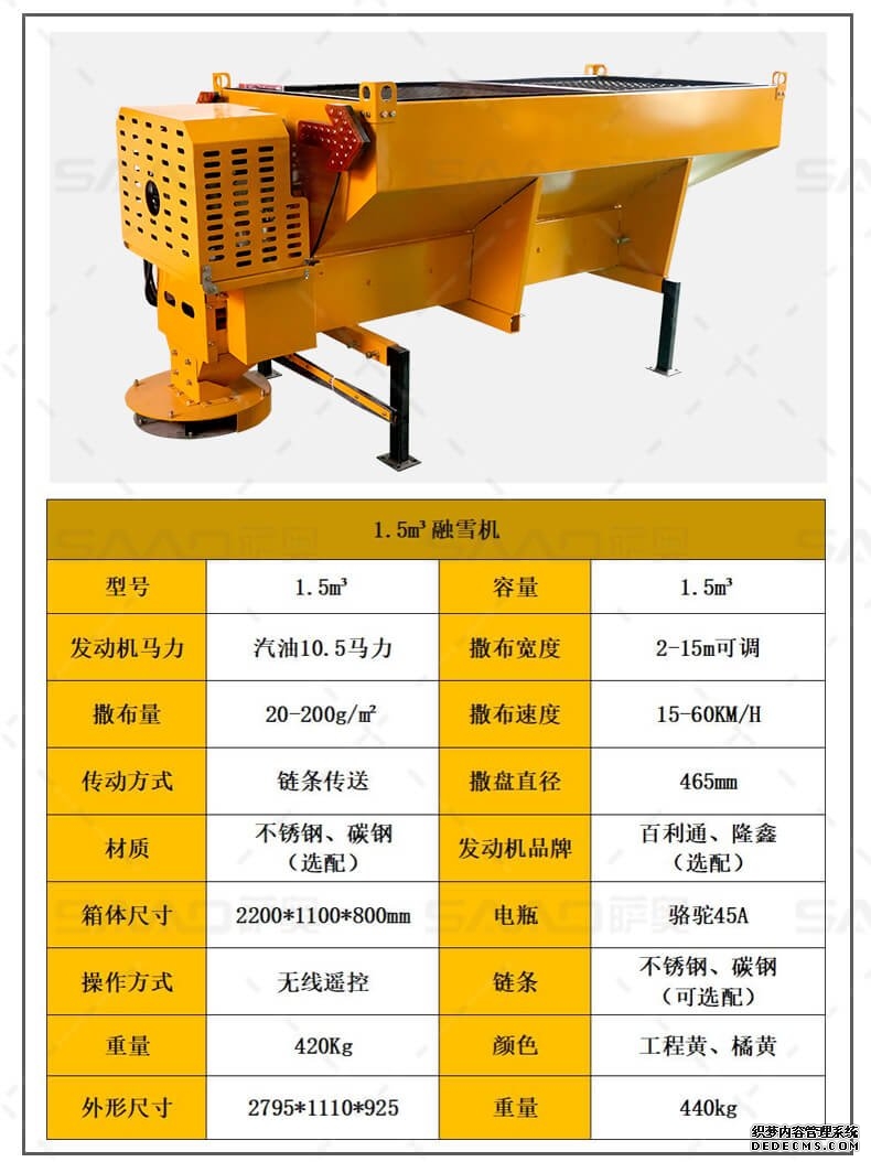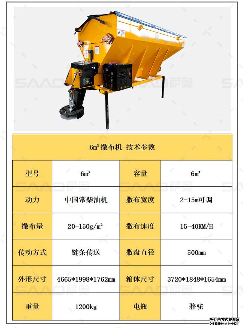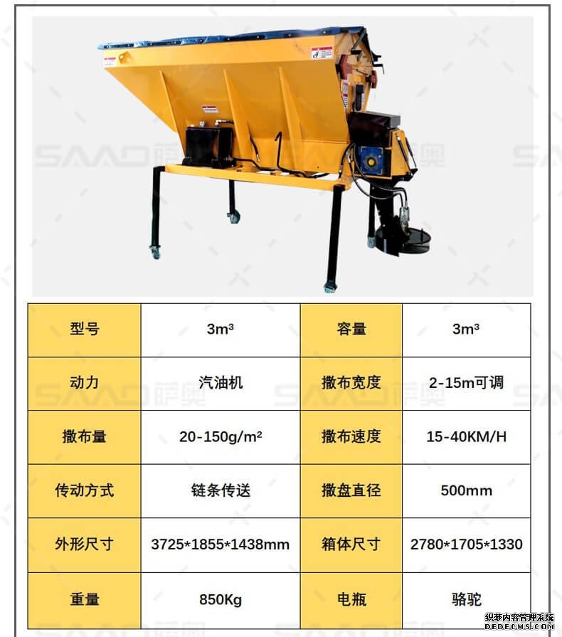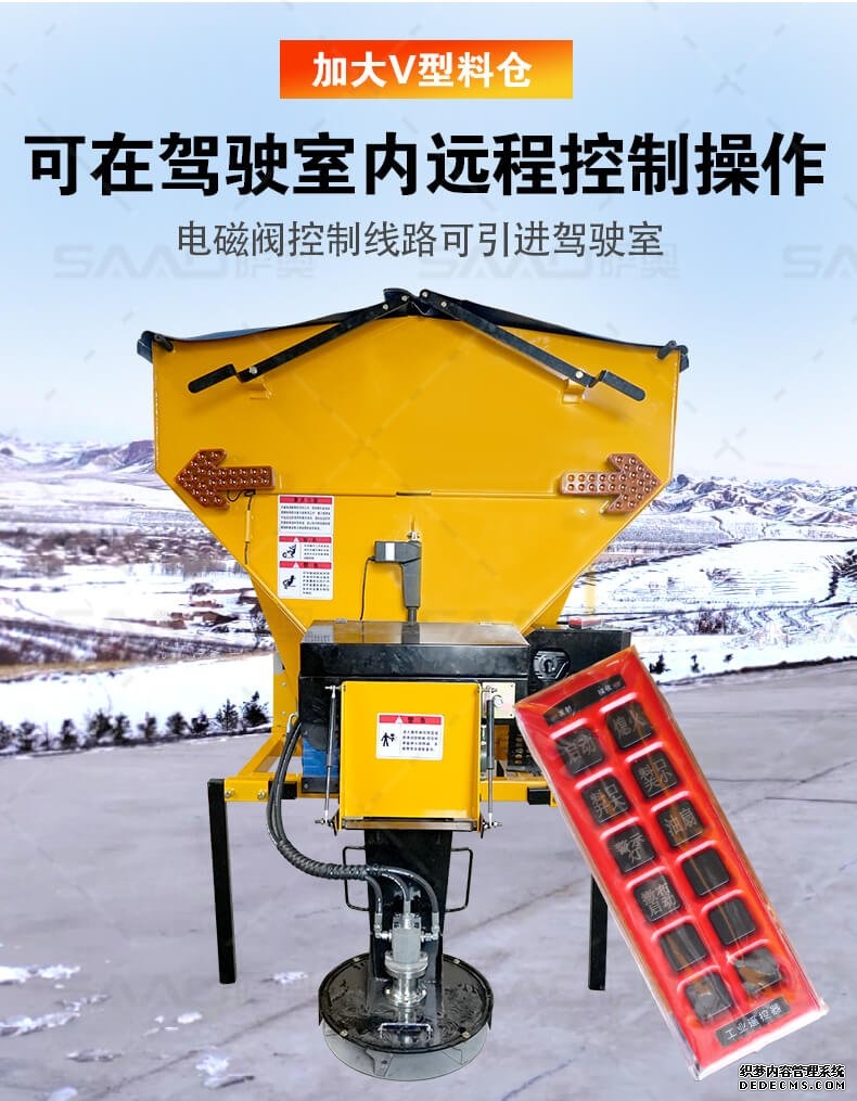 融雪劑撒布機(jī)是車(chē)載式撒布機(jī),適用于冰雪路面防滑沙料和融雪劑的撒布,是市政公路、高速公路的融雪撒布的便利設(shè)備。