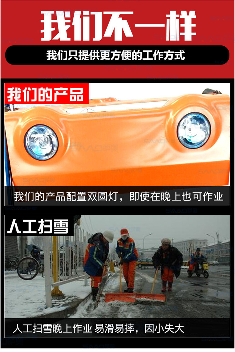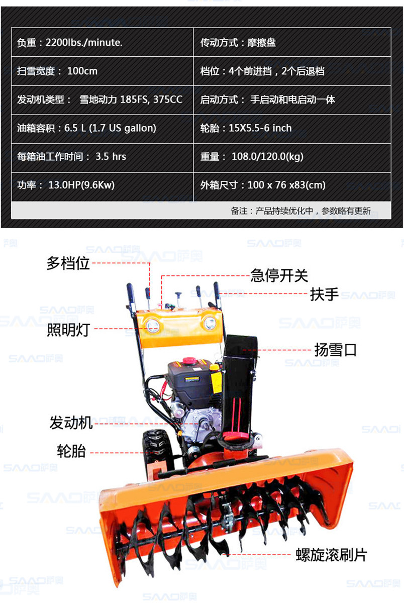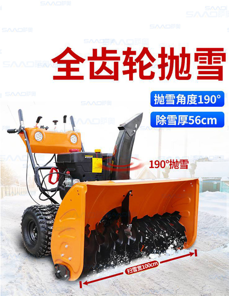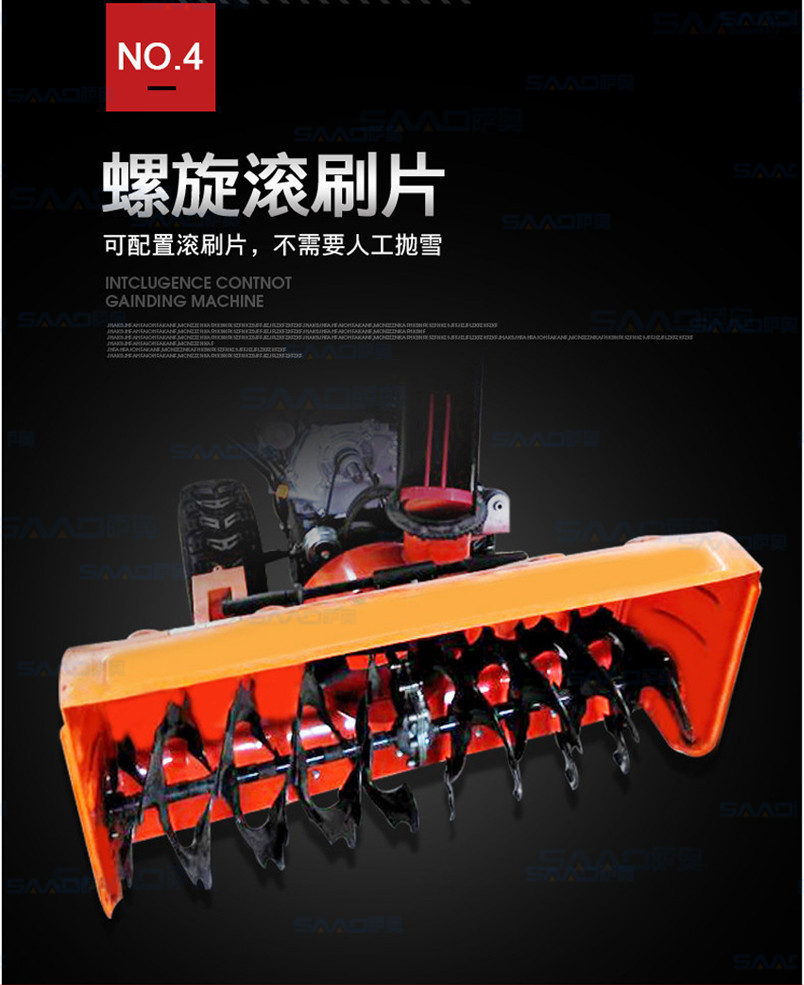 小型掃雪車由中型卡車或重型卡車、四缸汽車發動機、吸 雪管、鼓風機、排雪管、吸雪口、吸雪口液壓升降裝置、 旋轉式清掃刷、清掃刷連桿、固定架、 清掃刷液壓