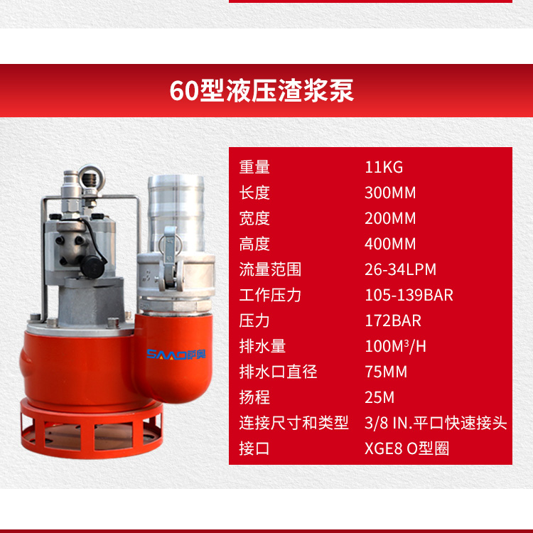 4英寸渣漿泵是一種大型的潛水泵,可以輸送更大量的水、泥漿、砂漿,它可以將直徑4英寸/10cm以下的固體顆粒排出。