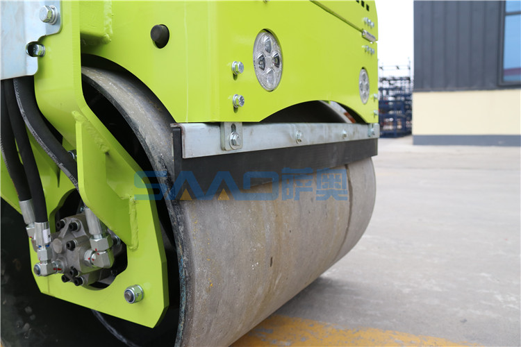 振動系統(tǒng):電磁離合振動,有獨(dú)立的振動開關(guān),壓實(shí)性好(壓實(shí)力度理論為25kn,可達(dá)27kn)。振動方式為雙驅(qū)前振,鋼輪經(jīng)過兩次鏜床加工,確保鋼輪與軸承的結(jié)合,并且經(jīng)過倒角處理,壓實(shí)無痕。